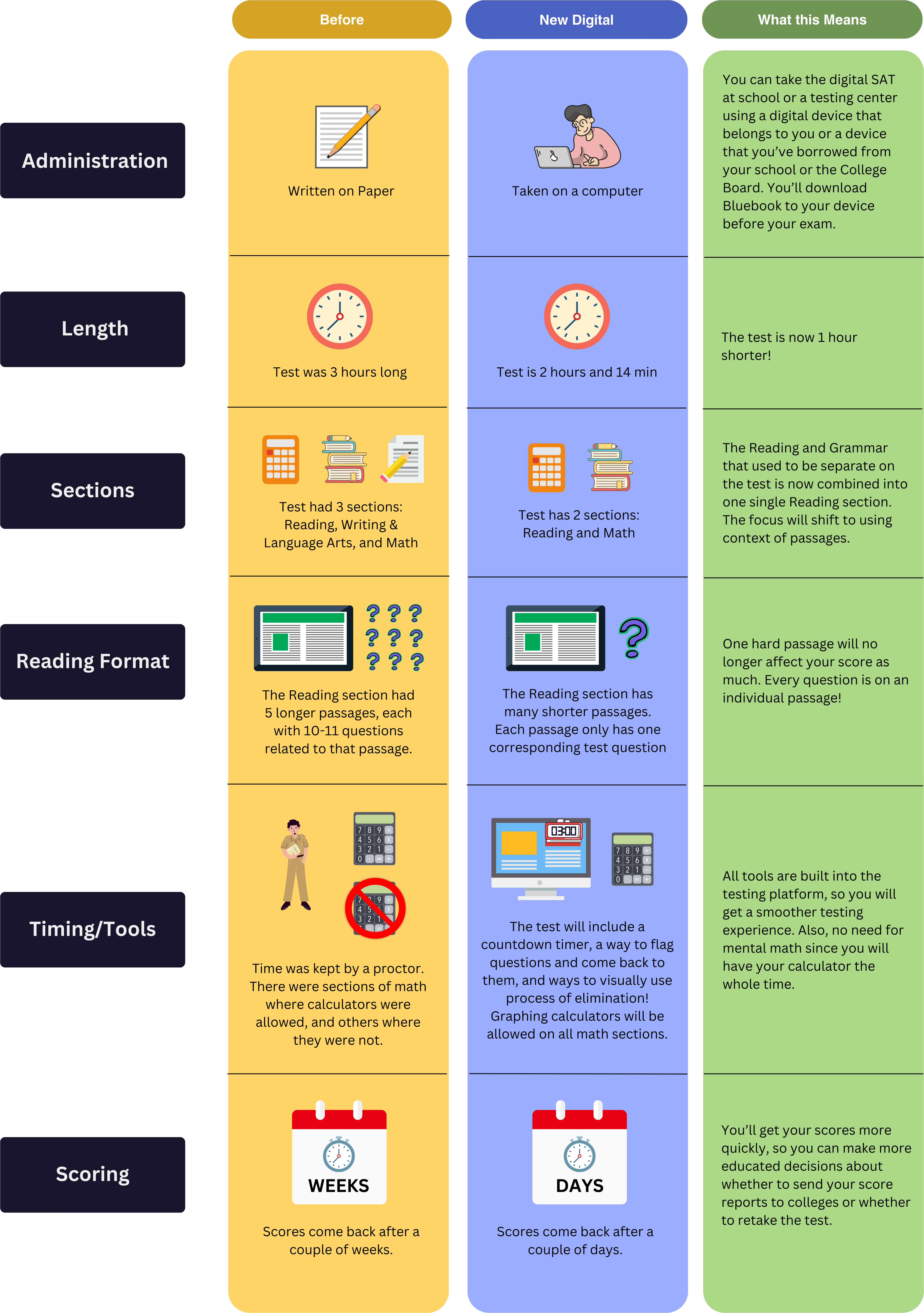 What this means is that for any juniors and seniors who want to take advantage of all the prep content that is currently out there for the current format, you will need to try to take the test between Oct-Dec! After that, all test prep companies (including STAFFS Prep) will be switching over to teaching strategies for the new digital format.